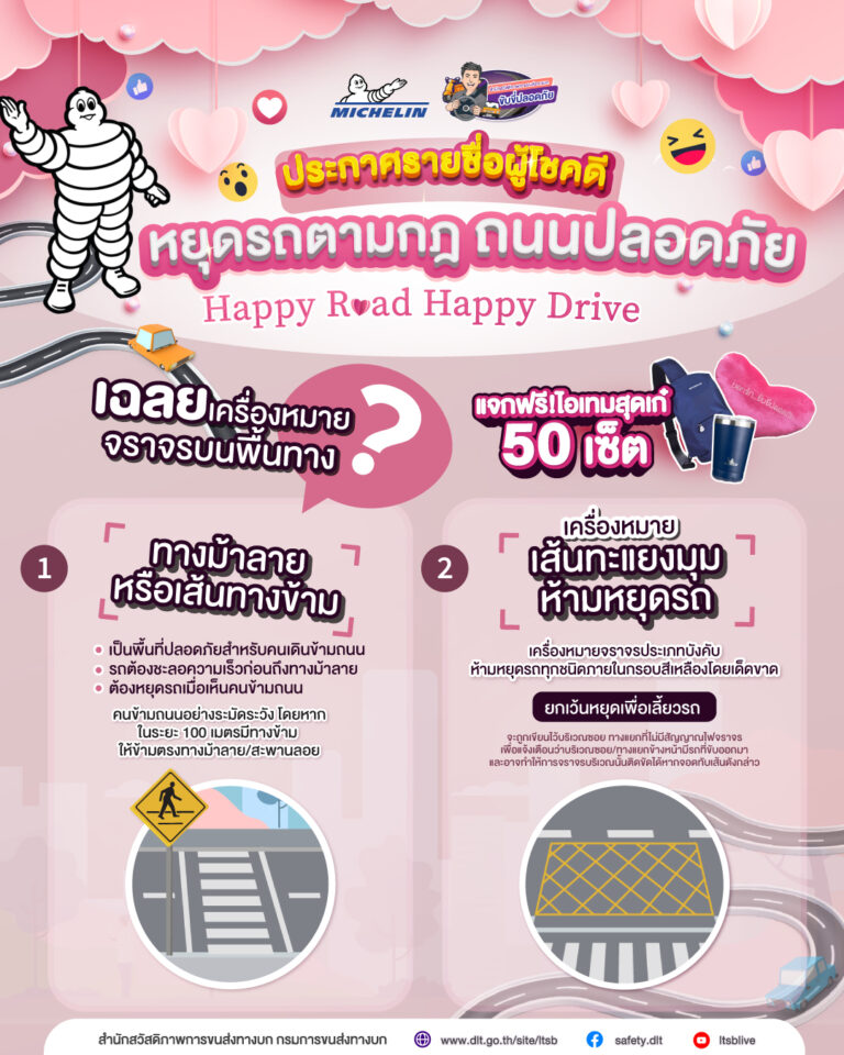 กิจกรรม กิจกรรมหยุดรถตามกฎ ถนนปลอดภัย HAPPY ROAD HAPPY DRIVE ชวนหยุดรถตามเครื่องหมายจราจรบนพื้นทาง พร้อมประกาศผลผู้โชคดีรับไอเทมสุดเก๋ 50 เซ็ตกุมภาพันธ์ 25, 2022กุมภาพันธ์ 25, 2022