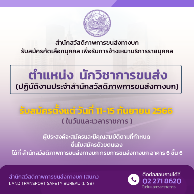 กิจกรรม ประกาศรับสมัครคัดเลือกบุคคล เพื่อเลือกสรรเป็นลูกจ้าง ปฏิบัติงานประจำสำนักสวัสดิภาพการขนส่งทางบกกันยายน 11, 2023กันยายน 11, 2023