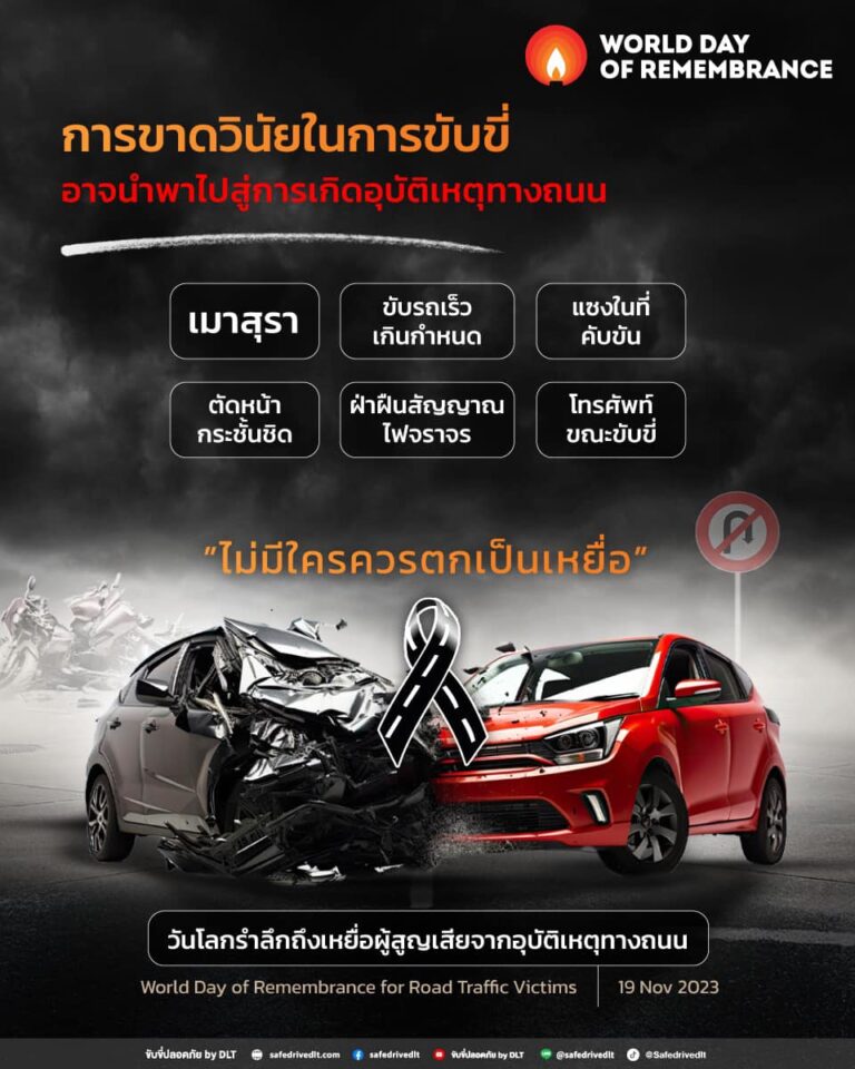 กิจกรรม วันโลกรำลึกถึงผู้สูญเสียจากอุบัติเหตุทางถนน (World Day of Remembrance for Road Traffic Victims)พฤศจิกายน 29, 2023พฤศจิกายน 29, 2023