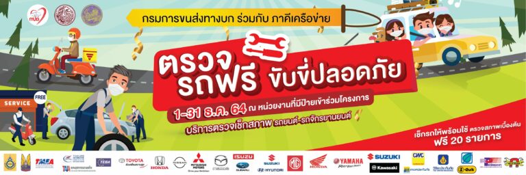 กิจกรรม “ตรวจรถฟรี ขับขี่ปลอดภัย” กรมการขนส่งทางบก ร่วมกับหน่วยงานภาครัฐและเอกชน มอบของขวัญปีใหม่ 2565 เชิญชวนประชาชนนำรถยนต์และรถจักรยานยนต์เข้าตรวจสอบความพร้อมก่อนเดินทางปีใหม่นี้ ฟรี!!! ตลอดเดือนธันวาคมพฤศจิกายน 30, 2021ธันวาคม 24, 2021