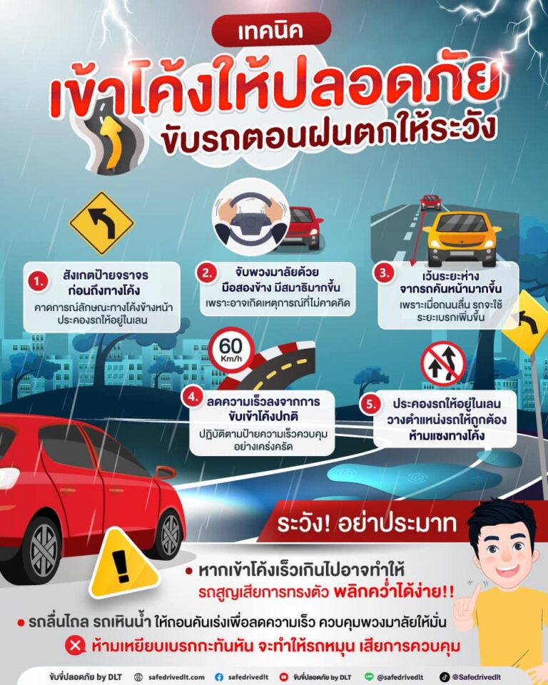 เทคนิคเข้าโค้งให้ปลอดภัย ขับรถตอนฝนตกให้ระวัง